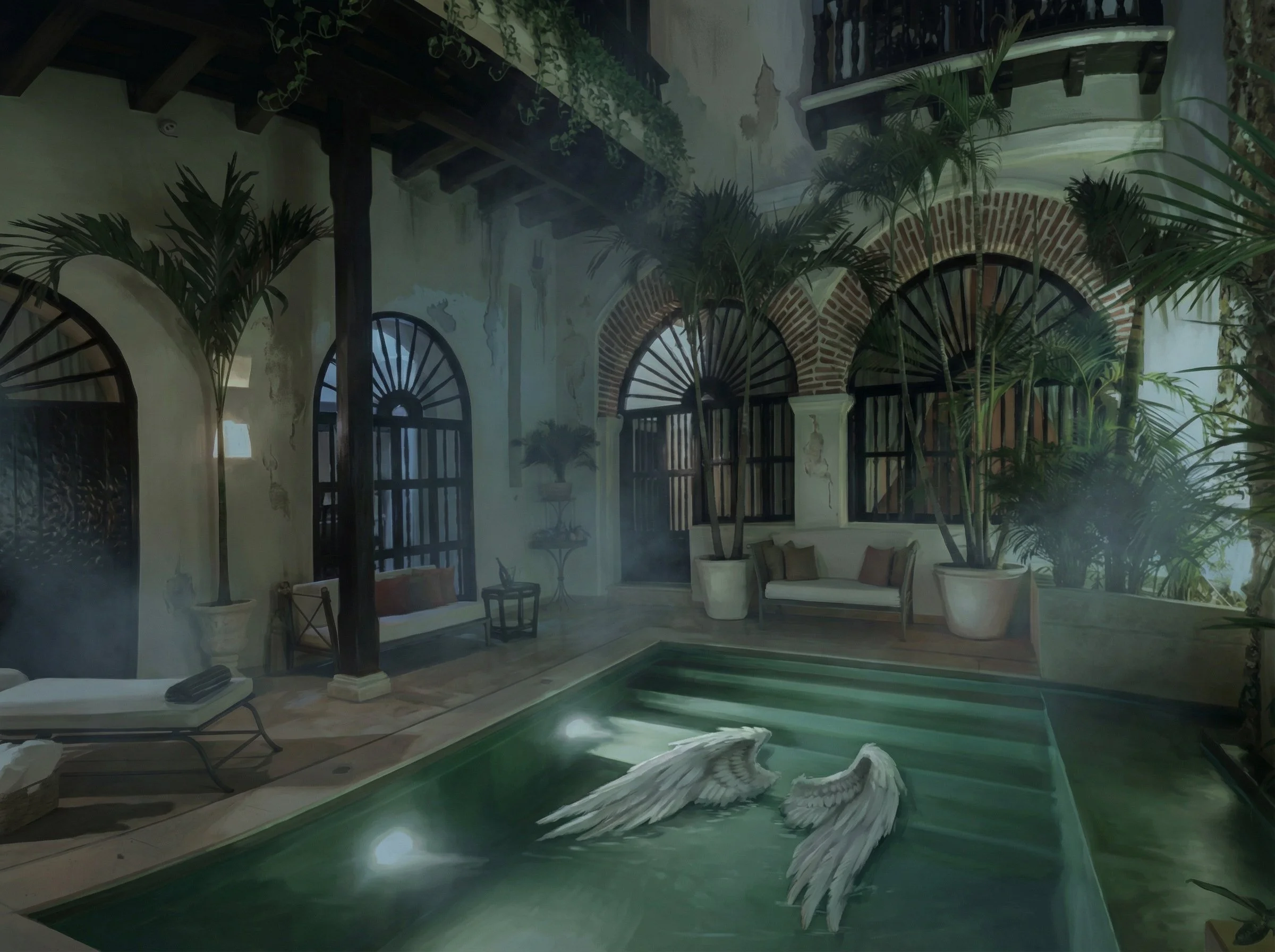 Exodus At The Old Hotel, Oil on canvas, 100 x 125 cm